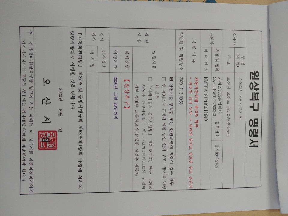 번호판 원상복구 카메라이동 설치
